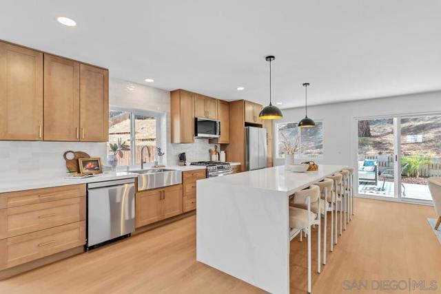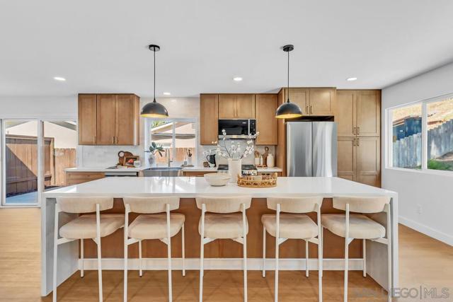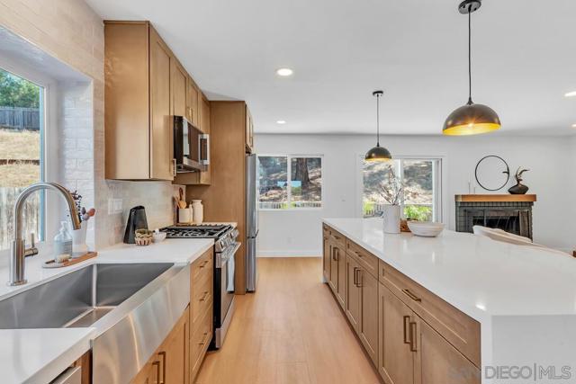 Welcome to 2182 Farrington Drive, a fully remodeled home in the highly desirable Fletcher Hills community. This residence combines modern design with thoughtful functionality, creating a home that feels brand new in one of San Diego’s most sought-after neighborhoods. The heart of the home is an open concept living space centered around a stunning ten-foot island with waterfall countertops, perfect for casual dining and entertaining. A cozy fireplace anchors the living room, inviting gatherings that flow seamlessly into the dining area and kitchen. Every detail has been refreshed with quality in mind. A brand new roof, windows, flooring, and paint complement state-of-the-art appliances and beautifully remodeled bathrooms. The three-car garage provides generous storage and parking, while the extended driveway allows room for an RV, boat, or additional vehicles. The backyard is a blank canvas ready for personal touches, with ample space for outdoor living or even a future pool. This is a rare opportunity to own a completely remodeled home in Fletcher Hills that offers style, comfort, and versatility.