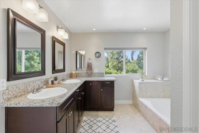 Nestled in the scenic rolling hills of Rancho San Diego/Hidden Mesa, this beautifully maintained home is located within the highly sought-after private gated community of Avocado Estates, featuring 101 custom estate homes. Step inside to soaring vaulted ceilings, engineered hardwood floors & travertine tile. The open-concept kitchen offers ample storage and seamlessly connects to a cozy family room w/ fireplace, perfect for everyday living & entertaining. The formal living & dining rooms offer comfortable spaces for gatherings. This spacious home features a bedroom & full bath on the first floor, ideal for guests or multi-generational living. Upstairs, the generous primary suite boasts breathtaking mountain & valley views, a bath w/ double sinks, a walk-in shower & a separate soaking tub. Outdoor living is exceptional here. Enjoy a massive, covered deck spanning the entire length of the home, accessible from both the family room & dining room. The impressive paver driveway, built-in fire pit & lush landscaping make outdoor entertaining pleasurable on this private 11,000+ sq ft lot. Additional highlights include a 3-car finished garage w/ epoxy flooring & built-in storage, extra driveway parking for 5–6 cars, dual-pane vinyl windows for energy efficiency, durable concrete tile roof, side yard & impeccably maintained landscaping. Mature avocado groves preserved by the original developer & available to residents for picking! Community amenities include hiking trails, parks, a spring-fed pond & a relaxing community pool. Community amenities include scenic hiking trails, parks, a spring-fed pond, and avocado groves. The recreation center offers a community pool, landscaped social areas, and a basketball court. All of this, just minutes from freeways 8, 125, 54, and 94, shopping, dining, outdoor activities, and less than 30 minutes to downtown San Diego and the coast. Don’t miss your chance to own this incredible home in one of East County’s most desirable neighborhoods.