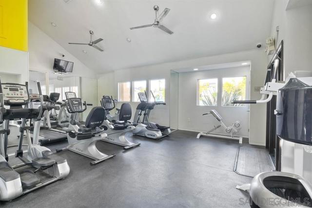 Welcome to Villa Taviana, a serene top-floor 2-bedroom condo located on the quiet side of the complex in the award-winning Poway Unified School District. This beautifully updated home features soaring vaulted ceilings, newer windows, and brand-new luxury vinyl flooring throughout. Enjoy resort-style amenities including a sparkling pool, fully equipped gym, stylish clubhouse, and tennis court. HOA covers water and trash for added convenience. With modern upgrades and peaceful surroundings, this condo offers the perfect blend of comfort, style, and community living. Two assigned parking spaces. Complex is VA and FHA approved.