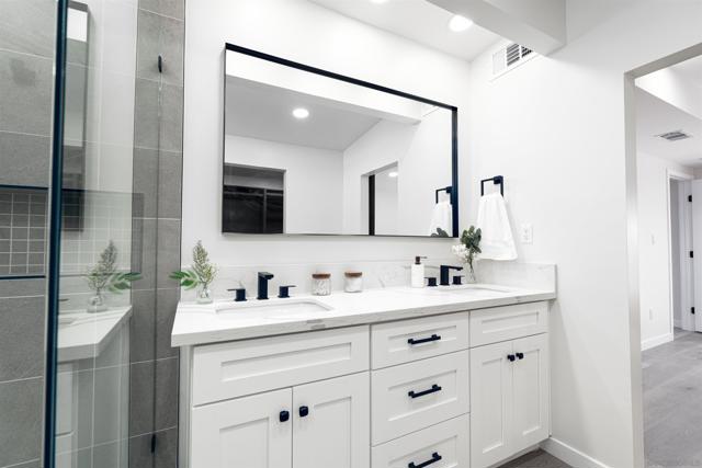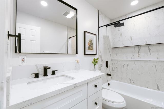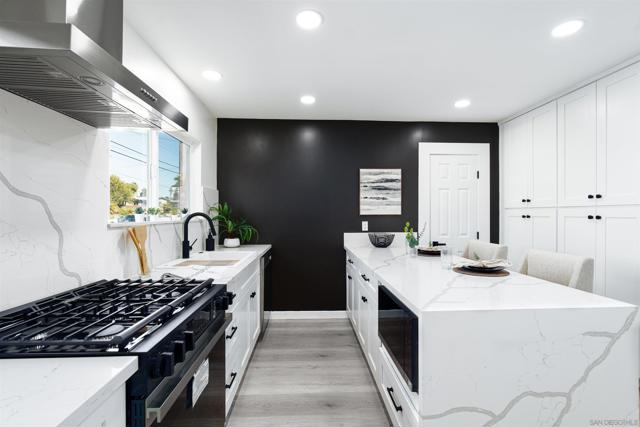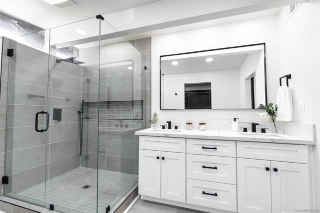 Step into your dream home, located in the highly coveted Clairemont community of San Diego! This stunningly remodeled residence effortlessly combines modern style, comfort, and an unbeatable location. Situated on a serene street, the home boasts a fresh and contemporary design, featuring a striking modern front door, luxury vinyl plank (LVP) flooring, and recessed lighting throughout. The open-concept gourmet kitchen is a showstopper, complete with a sleek waterfall-edge peninsula, stainless steel appliances, and brand-new cabinetry. The spacious living room, illuminated by natural light, opens to a fantastic enclosed patio. The primary suite is a tranquil retreat, offering a walk-in closet with built-in shelving and direct access to the backyard through a sliding door. The en-suite bathroom exudes sophistication, featuring dual vanities and a large walk-in shower. The backyard is a private oasis with ample space to relax while enjoying canyon views. Additional upgrades include a newer roof, furnace, AC, landscaping, and fresh interior and exterior paint. The seller has never occupied the property and has very limited knowledge of property condition or history. All measurements are approximate. Buyer's and Buyer's Broker/Agent should verify measurements and complete thorough inspections and investigations prior to Close of Escrow to satisfy themselves with the current condition of the property. Buyer(s) to verify and approve all data, reports, records, inspections, permits, MLS, HOA, if applicable and all information pertaining to the property prior to removal of contingencies. All contracts/offers are subject to seller approval and any offers or counteroffers by seller are not binding unless the entire agreement is ratified by all parties.