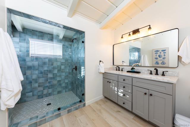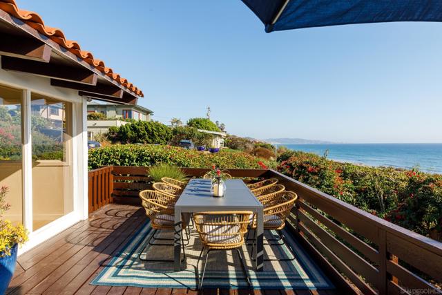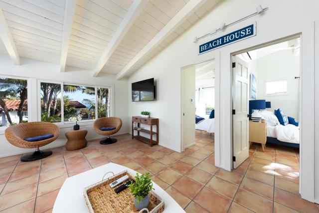 Welcome to our stunning hacienda home perched atop a bluff in Del Mar, CA! This unique property comprises three distinct residences, each offering its own blend of comfort and charm. Upon entering the primary house, you'll be enveloped in a warm and inviting ambiance. The living area boasts ample seating and showcases large windows that frame the mesmerizing ocean vistas. Whether you're relaxing on the comfortable sofas or gathering around the fireplace on cooler evenings, the living space is designed for both comfort and awe-inspiring views. This home features two spacious bedrooms furnished with King beds and each with its own dedicated lounge area and en suite bathroom. These lounge areas are perfect for unwinding and enjoying some personal space, while the en suite bathrooms provide convenience and privacy. The fully equipped kitchen is a haven for culinary enthusiasts, featuring modern appliances, a central island, and generous counter space. Whether you're preparing a quick snack or a gourmet meal, you'll find everything you need right at your fingertips. The elegant dining area offers seating for all guests, creating a perfect setting for enjoying your culinary creations. Adjacent to the primary house on the north side of the property, you'll find another two-bedroom house with a shared bathroom, offering comfortable accommodations and two King beds for family members or friends. (continued in supplement) Also, nestled on the property, there is a full studio furnished with a Queen bed and fully stocked kitchen, providing a cozy and private retreat for those seeking a more intimate setting All three residences enjoy the captivating backdrop of panoramic ocean views, just a short stroll from the beach. This spacious retreat, with a total of 5 bedrooms and 4 bathrooms, is well-suited for larger families or groups of friends seeking a memorable getaway. Each of the 5 bedrooms has been meticulously designed with your comfort in mind and furnished with luxury bed and bath linens. The decor throughout the entire property harmonizes with the hacienda style, fostering an atmosphere of tranquility and relaxation. The outdoor space is a true highlight of this property. Step outside onto the expansive patio, where you'll discover multiple seating areas ideal for soaking up the sun, enjoying al fresco dining, or simply reveling in the incredible ocean views. For barbecue enthusiasts, there's a grill available to enhance your outdoor dining experience. Del Mar's beautiful beaches are within easy reach, allowing you to take leisurely strolls along the shoreline, build sandcastles, or simply bask in the sun. Explore the charming town of Del Mar with its vibrant shops, restaurants, and art galleries, or venture further afield to discover the attractions of the greater San Diego area.