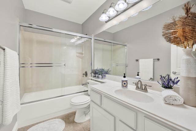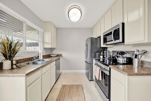 Welcome Home to this beautifully updated townhome in a peaceful, park-like, fully fenced in community. This spacious 2 Bedroom, 1.5 Bath home features gorgeous laminate flooring, granite counter tops, designer touches throughout and in-unit laundry. Enjoy two private patios plus a balcony off one of the bedrooms, ideal for relaxing and/or entertaining. Recent upgrades include new carpeting upstairs, new appliances (warranties will be provided), new ceiling fans, upgraded electrical, fresh paint throughout and custom blinds on all of the windows and sliding glass doors. The well-maintained complex offers a sparkling pool, fitness center, and lush landscaped grounds. Conveniently located near shopping centers, restaurants, coffee shops and with easy freeway access.