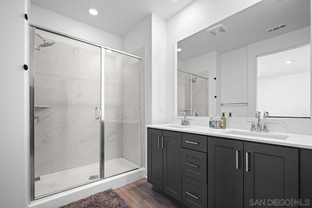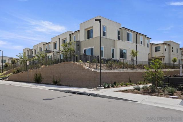 Stunning newer construction end unit townhome in a quiet, bright, and breezy location featuring 4 bedrooms and 2.5 bathrooms. Upon entry you are greeted to an open concept floor plan with your formal great room open to your oversized Chef's kitchen. Custom fixtures galore and home features solar and EV charging! Generous sized primary bedroom with ensuite bathroom featuring a spacious walk-in closet. Three secondary bedrooms and an upstairs hall bath with modern finishes. Laundry room conveniently located upstairs. Two car attached garage. Beautifully designed master plan community featuring community amenities with a pool, clubhouse, basketball court, picnic area, dog parks, exercise room, pickle ball, playground/tot lots, BBQ, and more! Convenient access to the 805 freeway, Ralph's Grocery, Sharp Medical Center, etc. This is a must see!