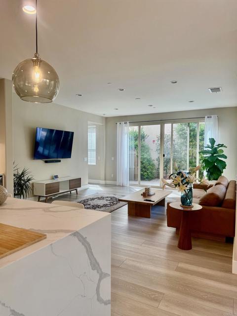 Available Jan 1st Step into sleek, sophisticated living in this impeccably upgraded 3-bedroom, 2.5-bath home located in a Del Sur Neighborhood. With stunning designer touches, smart features, and an airy open floor plan, this home is the perfect blend of luxury and comfort.Spacious 2-car garage + extra dedicated parking space. Modern Living Space: -Light-filled open-concept living room with floor-to-ceiling glass sliders. Seamless flow from living to kitchen and dining perfect for entertaining Custom wide-plank luxury vinyl flooring throughout Gourmet Chef's Kitchen Fully Upgraded: Sleek white shaker cabinetry with soft-close drawers and abundant storage Designer hex tile backsplash and Calacatta quartz countertops Oversized center island with waterfall edge + bar seating Premium stainless steel appliance suite (gas range, double oven, wine fridge, and more) Modern pendant lighting + under-cabinet LEDs for a chic, functional aesthetic Outdoor/Indoor Living: Private, lushly landscaped patio space ideal for al fresco dining or relaxing Additional Highlights: Spacious primary suite with ensuite bath Central A/C + smart thermostat In-home washer/dryer hookups High ceilings, recessed lighting, and designer finishes throughout, solar included- low electric bills as well as 240V outlet in garage. Prime Location Minutes from top-rated schools, shopping, dining, and commuter routes. This is not your average rental it's a modern masterpiece with upgrades galore.