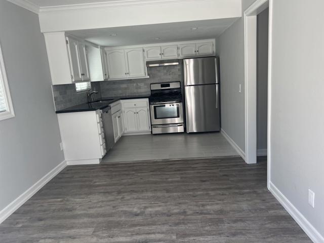 Recently remodeled 400 SQFT, downstairs apartment, quietly nestled behind the main house. Part of a well-maintained four-unit complex, this unit features a smart, efficient layout with stylish modern updates throughout. Enjoy the convenience of a private alley entrance, your own front patio, in-unit stackable washer/dryer, and AC. Tenant is responsible for utilities. One pet may be considered with prior approval.