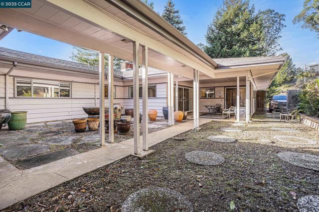 Mid-Century Modern with San Francisco Skyline Views Private and serene, this striking mid-century home sits on a secluded one-acre lot with sweeping views of the San Francisco skyline, city lights, and Bay. Offering 3,181 sq. ft., the home features 4 spacious bedrooms, including a guest bedroom with ensuite bath, plus a luxurious primary suite with marble tile, double pedestal vanity, and a sunken jetted tub. Designed for easy indoor-outdoor living, the home includes a light-filled living room with wood-burning fireplace, a family room with second fireplace, formal dining room, and a courtyard accessible from the kitchen and family room, with a breezeway to the primary suite. Property highlights include two full baths, two half baths (one in the garage), 2 driveways with additional parking for several cars. Close to regional parks, trails, Skyline High School, and more, this home offers the perfect blend of mid-century character, privacy, and Bay Area convenience. Owners have lived here for 53 years... Needs TLC... So bring your design ideas to take it to the next level!