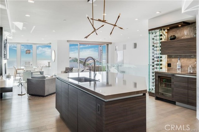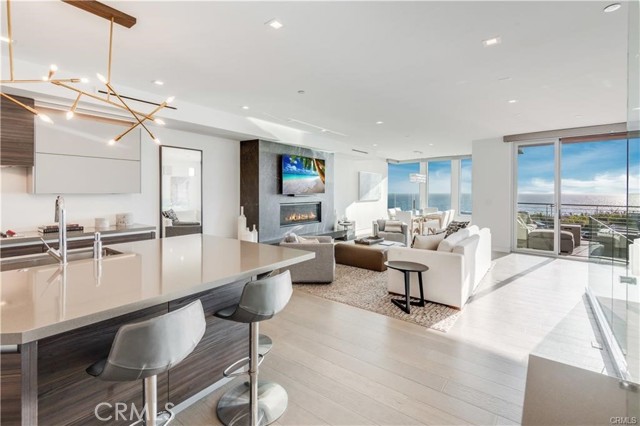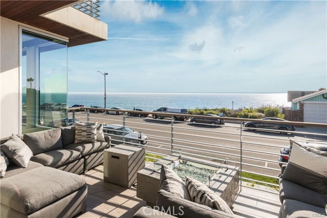 Lavishly Luxurious Condo with Breathtaking Ocean Views! Idyllically situated in a three-unit building, this 3BR/2BA, 1,950sqft first-row residence offers a feast for the senses with gorgeous contemporary architecture and lush tropical landscaping. Recently built in 2017 and thoughtfully designed by renowned designer, Kimberly Colletti, the interior captures the essence of chic modern living with an open concept floorplan, oversized windows, premium finishes, beautiful wood flooring, recessed lighting, and an expansive great room with a custom fireplace. Equipped to satisfy even the most discerning, the open concept gourmet kitchen features top-of-the-line stainless-steel appliances (Wolf and Sub-Zero), cabinetry, a breakfast bar, a wine cellar/wet bar, and a glamorous dining area with a chandelier. Explore further to discover an oversized primary bedroom with ample closet space and an ultra-luxe en suite boasting a standalone soaking tub, a glass enclosed shower, and a dual sink vanity. Two additional bedrooms are generously sized, while both guest bathrooms impress with lavish style and superior function. Unsurpassed entertaining possibilities abound in the fully enclosed backyard, which has a built-in BBQ and a lovely conversation area. Savor the glorious sunset views over the Pacific on your sprawling oceanfront deck. Other features: attached 2-car garage, laundry area, security system, SMART home technology, close to trendy dining and shops, and more! Call now for a tour!