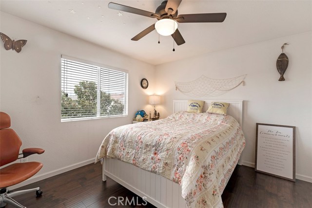 Beautiful four-bedroom home with a main-floor bedroom and full bath. Separate living and dining rooms and laminate wood flooring throughout. Upstairs includes a spacious office ideal for working or studying from home. Most rooms feature ceiling fans for year-round comfort. The large backyard is perfect for relaxing or entertaining, with a gazebo equipped with power, lighting, and a fan. Three-car garage plus an oversized driveway offers ample parking, including potential RV space, and includes a 220V EV charger. Prime location within walking distance to parks, shops, Chino Hills High School, and other top schools. Easy freeway access to both Orange County and Los Angeles.