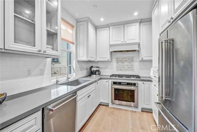 Welcome to 18228 Grevillea! This beautifully designed, three-level townhome offers a spacious floor plan and engineered hardwood floors, making it easy to feel right at home. Home is in excellent condition. Built in 2018. On the main level, you'll find a versatile fourth bedroom (perfect as a den, home office, or Zoom room), an open-concept kitchen, dining, and living area complete with a cozy fireplace, and a full bathroom. The kitchen is both stylish and functional, featuring quartz countertops, a gorgeous backsplash, and seating for two. It flows seamlessly into the dining area, which comfortably accommodates four or more. Step out onto the balcony to enjoy fresh air, space for a gas grill, and seating for six perfect for outdoor meals or relaxing evenings. Upstairs, the primary suite is your retreat, with its own fireplace, Juliette balconies, and a luxurious en-suite bathroom featuring marble finishes, a walk-in closet, a jetted tub, and a separate glass-enclosed shower with a hand sprayer. Two additional bedrooms and another full bathroom complete the upper level. On the street level, you'll have direct access to a two-car garage with extra storage. The Grevillea Gardens complex has recently updated its landscaping, and the property includes a secure gated entrance for vehicles. Your new home is conveniently located in the Torrance Unified School District, with a Redondo Beach mailing address. Commuting? You're just five minutes from the 405. Want to get outside? El Nido Park is a quick five-minute walk away. Plus, restaurants, shopping, and services are just around the corner. This is a wonderful opportunity don't miss out!