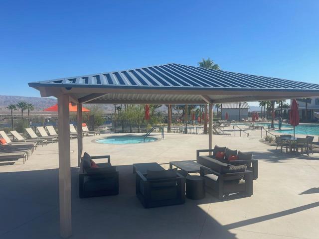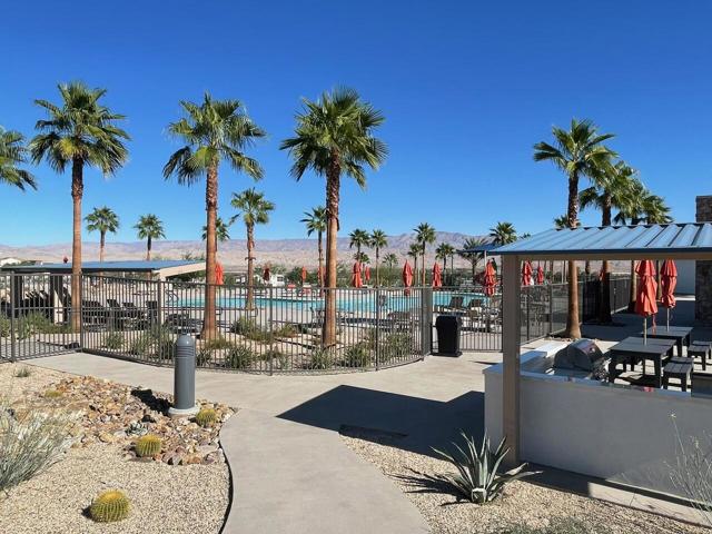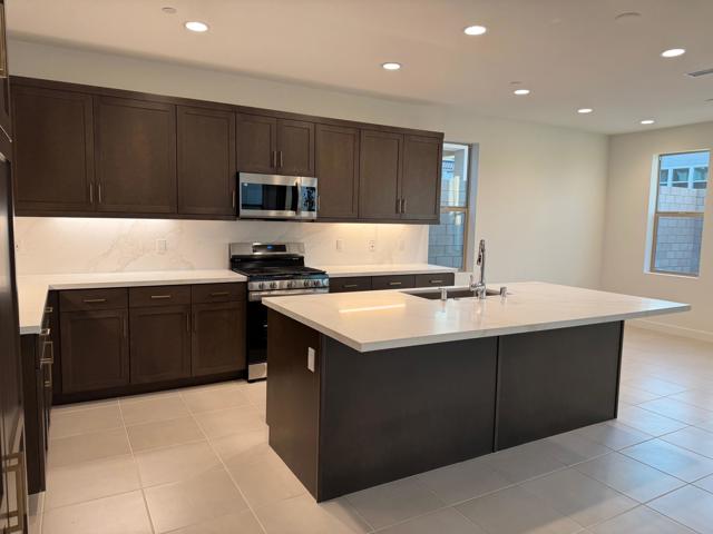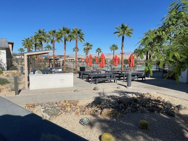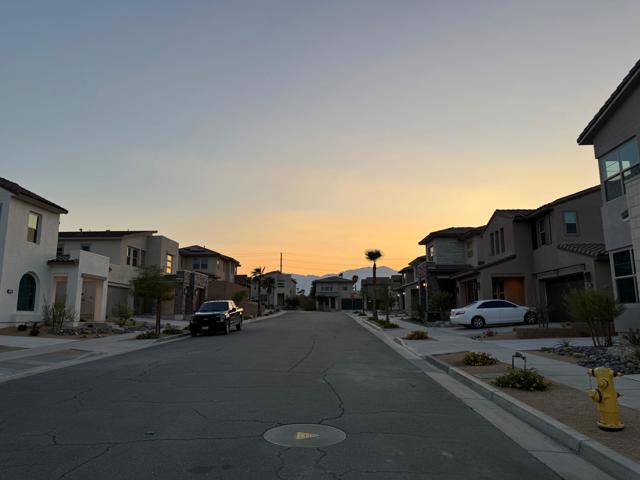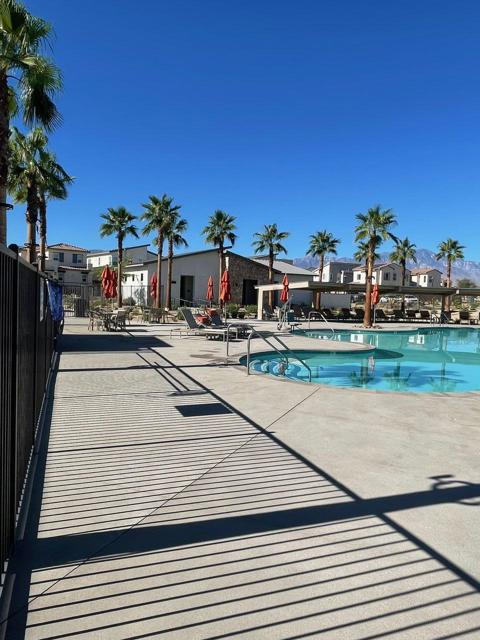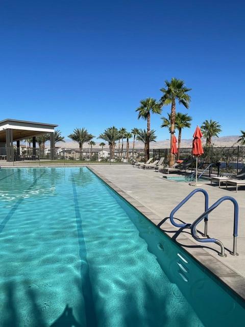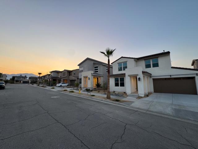 Situated in one of the newest resort style communities in Palm Desert at University Park - NOVA. This stylish model single family 2 STORY home is designed with a contempered modern touch that opens immediately into the casual living\dining and entertaining open concept with kitchen area overlooking a spacious great room and exit door access to the expansive and finished backyard with some views of the chocolate mountains that border Joshua Tree. inside provides ample well-lit shaker and mocha colored cabinetry spaces finished with bronzed knobs and easy storage that also features a center island white with granite counters and a breakfast bar, a kitchen pantry and ample storage. Appliances for this home will include an energy efficient stove, dishwasher. fridge washer and dryer Other highlights, are the 2 room full size casita, with breakfast bar small fridge an micro with room for a private stand up laundry that room will allow for separate private entry to include an everyday private access for a growing family or next gen flat, or simply a flex room or office space off the porch (which could be ideal for a ''home office), a powder room, bedroom-level laundry, and ample storage throughout. The 2nd level boasts an expansive living space where there are three other secondary bedrooms which share a full bath with a separate vanity areas. The secluded primary suite includes a walk-in closet and a charming primary bath with a dual-sink vanity, a luxe shower, and a private water closet. This home has modern conveniences and is designed for water conversation including solar savings for your cars and efforts to lower your energy cost consumption. This peaceful and tranquil setting in Palm Desert. is complemented by the associations amazing pool, gym and playpark amenities that include access to The Grove which features a clubhouse, multiple pools (adult, lap, children) spas, fire pits, pickleball courts, ping pong, shaded playground and bocce ball. This community also features for year-round activities like hiking, biking and golfing centrally located and in close proximity to all shopping areas and freeway travel points.
