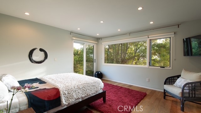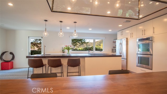 This Rustic- Modern Architectural Home, redesigned by Ryder Design features 4 bedroom, office/den, a spacious kitchen/dinning room and living room with 3.5 well appointed bathrooms. Enjoy the luxurious tranquility and beauty of the mountain views and flowering hillsides from your poolside deck. Just a short drive from all the rest of LA had to offer! Your private hideaway is light and bright, features magnificent walnut floors, state of the art appliances and stunning finishes. In addition there is a brand new dumbwaiter elevator allowing both laundry and food deliveries to easily arrive upstairs. The upstairs primary bedroom includes a balcony, with expansive view and a bathroom with double vanity, designer tile, and an oversize tube. outdoors can double as a private nature retreat and a true entertainment's venue with sparkling pool an spa, multiple spaces for sunbathing, lounging and dining, plus fire pit, playhouse and more. This special home is a bird watcher's paradise and a true gem.