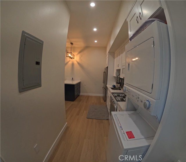Beautifully built brand-new construction studio located in a quiet residential neighborhood of Hawthorne. This modern, fully furnished unit features an open floor plan with high-end finishes throughout. The kitchen offers white shaker cabinets, quartz countertops, tile backsplash, stainless steel appliances including a refrigerator, dishwasher, stove, and microwave. Enjoy the convenience of an in-unit washer and dryer and plenty of storage space. The bathroom is elegantly designed with a glass-enclosed shower/tub combo, contemporary vanity, and designer tile work. Additional features include mini-split air conditioning and heating, tankless water heater, new lighting fixtures, and wood-style flooring throughout. One parking space is included on the driveway. Everything in this unit is brand new—move-in ready and thoughtfully designed for modern living. Close proximity to freeways, shopping, dining, and LAX.
