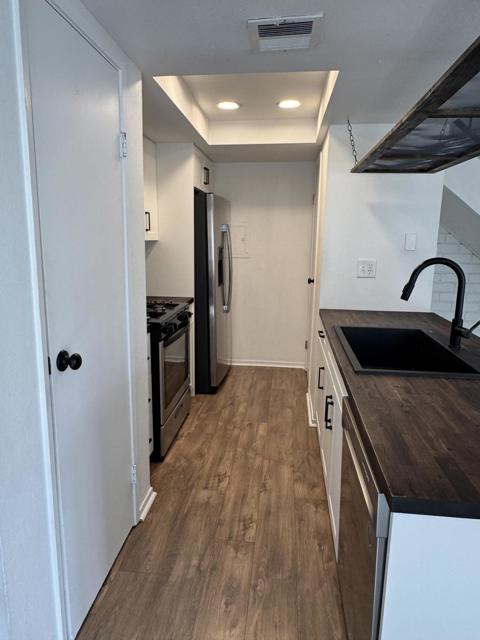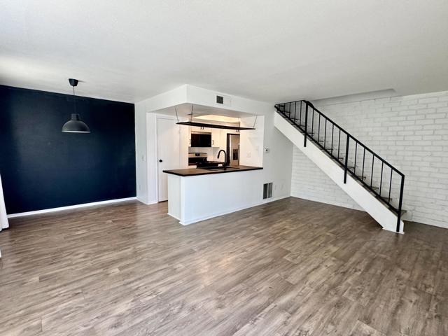 Welcome to this stylishly updated 2-bedroom, 1-bath condo located in the heart of Palm Desert in the desirable community of Indian Creek Villas! This modern two-story home features sleek wood-style flooring throughout, a freshly remodeled kitchen with stainless steel appliances, black fixtures, and warm butcher-block countertops. The open-concept living area is highlighted by a striking white brick accent wall and contemporary staircase railing, offering a perfect blend of comfort and character.Enjoy mountain views and easy access to local hiking trails just steps from your front door. Upstairs you'll find two spacious bedrooms, each with ceiling fans and ample natural light. The shared garage and on-site laundry add convenience to everyday living.Perfectly situated near shopping, dining, and outdoor recreation -- this home is ideal for those seeking a clean, modern space in a prime Palm Desert location.
