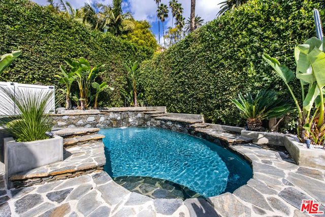 Nestled within the highly coveted lower Sunset Plaza, discover your exclusive retreat offering unparalleled privacy and tranquility. This walled and gated sanctuary is just moments from the vibrant pulse of Sunset Boulevard, where restaurants, boutiques, iconic hotels, social clubs, and Equinox await your exploration. Step into your light-filled residence, featuring a spacious living room with a fireplace and a formal dining room, as well as four bedrooms and five bathrooms, each ensuite, enveloping you in comfort and style. The European kitchen boasts top-of-the-line stainless steel appliances and a banquette. Embrace Southern California's indoor/outdoor lifestyle as public rooms seamlessly blend with the private backyard oasis, complete with a sparkling pool, rejuvenating spa, and multiple areas for al fresco dining and entertaining. Retreat to the downstairs primary suite, where an oversized fireplace and a stunning Carrera marble bathroom await to pamper your senses. Picture-perfect views of the front courtyard provide the ideal backdrop for savoring sunsets. Two additional bedrooms upstairs, one with a balcony offering stunning views, and one downstairs complete the living spaces.