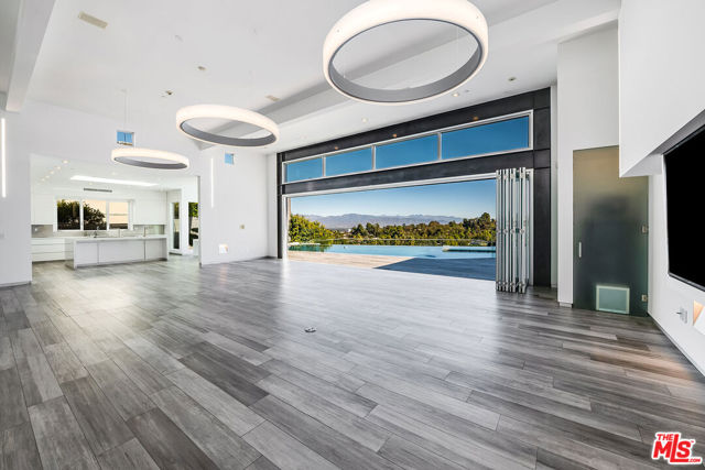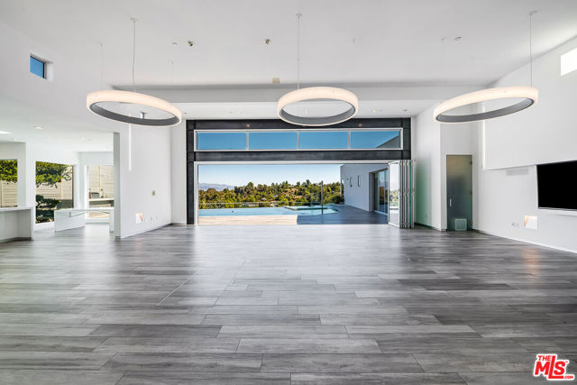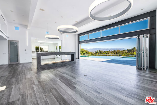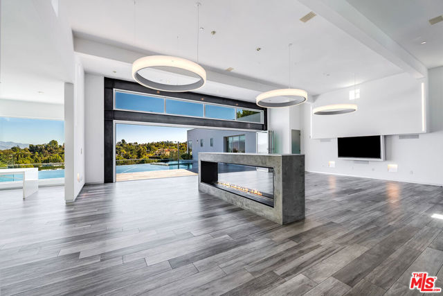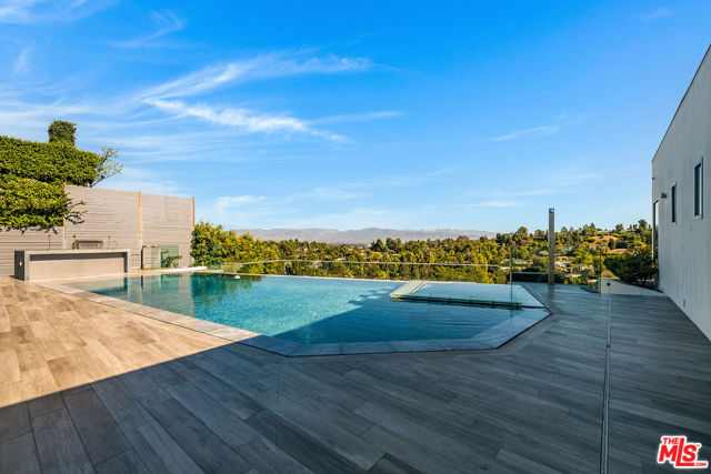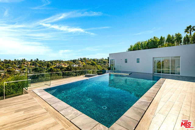 Stunning Single-Story Modern in Prime Encino Hills. Experience sleek, contemporary living in this sensational one-story modern home, perfectly situated on a quiet cul-de-sac in the heart of Encino Hills. Designed with high ceilings, gallery-style walls, and expansive floor-to-ceiling glass doors and windows, this home offers an open, airy floor plan ideal for entertaining and showcasing breathtaking canyon and city light views.Built from the ground up in 2015, the residence embodies clean architectural lines, sophisticated finishes, and seamless indoor-outdoor flow. The entertainer's backyard features a sparkling swimmer's pool, sun-drenched patios, and multiple spaces for dining alfresco or simply relaxing in style.The spacious primary suite offers a serene retreat with exceptional closet space and a luxurious en-suite bath. Three additional bedrooms provide ample comfort for family or guests. The gourmet kitchen is a chef's dream, featuring stainless steel appliances, a large center island, and an ideal layout for cooking and entertaining alike.Slide open the glass doors to invite in the surrounding natural beauty...this is California living at its finest.