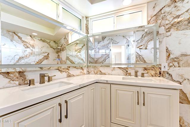 Welcome to 'The Dons' in Baldwin Hills Estates, Los Angeles. This property showcases sweeping, uninterrupted vistas of Downtown Los Angeles and the Hollywood Hills from your private rear patio. This single level home features three bedrooms, one thoughtfully transformed into a professional home office equipped with a custom cherry wood desk and cabinetry. Upon arrival, elegant travertine tiles and newly restored wood flooring guide you toward a welcoming den or formal dining room complete with a fireplace and wood-beam ceiling, conveniently located next to the kitchen.The kitchen stands out for its luxurious style and craftsmanship, boasting brand-new high-end appliances, granite countertops and backsplash, soft-close cabinetry, and pull-out drawers. There's a cozy eating nook just off the kitchen, offering picturesque city views. The spacious primary bedroom includes plantation shutters and an updated ensuite bathroom adorned with marble walls, dual frameless LED anti-fog mirrors above double sinks, a soaking tub, a Thermostatic shower tower, and numerous additional enhancements. The hallway bathroom provides a unique carved vanity with a marble basin, a modernized shower lined with travertine, new hardware, and Venetian plaster finishes.Accessible from the kitchen, the indoor laundry area is fitted with a state-of-the-art Samsung smart side-by-side washer and dryer, a soaking sink, and a half bath. The attached two-car garage delivers direct entry into the home, along with an automatic opener and interior EV charging station. Throughout the residence are recessed lights (mostly on dimmers), central air conditioning and heating, plantation shutters, and upgraded windows. Take advantage of this chance to lease an exceptional home.