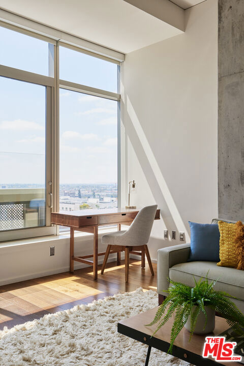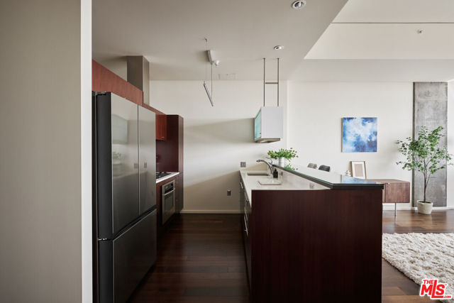 Fully furnished and available month-to-month, this luxury one-bedroom residence at Evo in Downtown LA offers a rare opportunity for flexible, turnkey living during the holidays and beyond. This smartly designed one-bedroom features over 11' ceilings and expansive east-facing windows that flood the space with natural light and capture panoramic city views. Interior highlights include dark wood flooring, matching custom cabinetry, a gorgeous galley kitchen with stainless steel appliances, plus a spacious utility/storage room. The unit is in excellent condition. Evo is a full-service luxury high-rise offering 24/7 front desk, security, concierge, and on-site management. Resort-style amenities include a rooftop fitness center and resident lounge with skyline views, as well as a 6th-floor terrace with an infinity lap pool, spa, BBQ area, and sundeck. Located in the Social District, Downtown LA's premier neighborhood, you're minutes from Crypto.com Arena, LA Live, USC, California Hospital, FIDM, Whole Foods, FIGat7th, The Bloc, and the Metro. Available immediately. Month-to-month leases welcome. All utilities included for leases under 6 months. Excellent condition, move-in ready. No smoking. Tenant to verify all details. No pets. Rent includes assigned parking space in building subterranean garage.