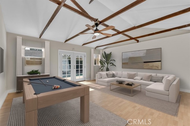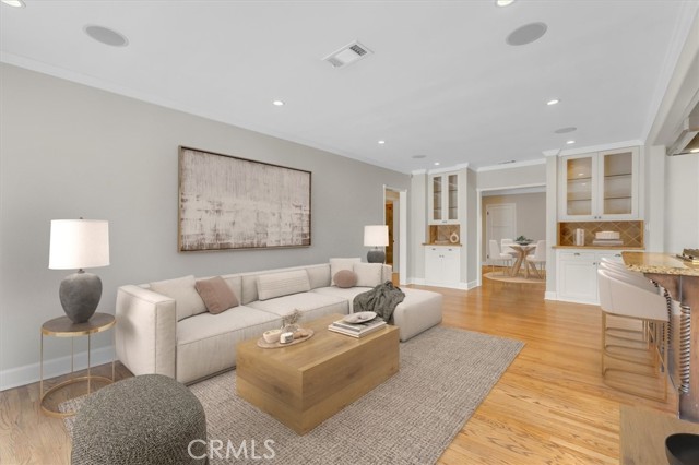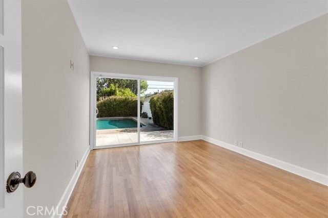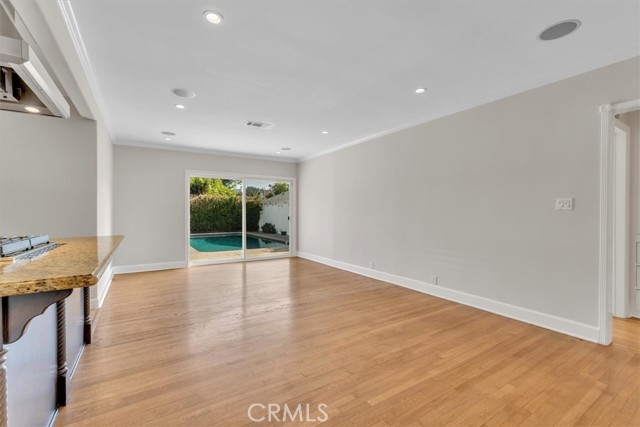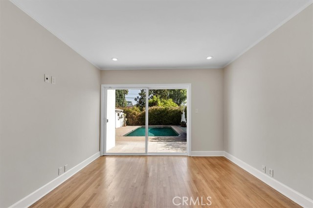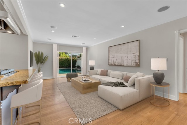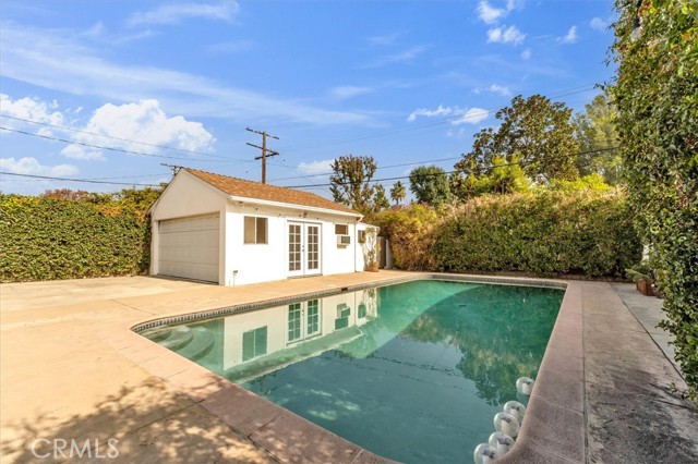 Charming pool home available for lease in Toluca Lake! Beautifully landscaped front yard with great curb appeal leads to inviting entry area with quaint front porch. Light and bright living room with stone fireplace, hardwood floors, ornate crown molding and updated powder room. Open concept family room and kitchen area is ideal for entertaining. Sun filled kitchen with granite counter tops, custom cabinets, stainless steel appliances, center island with built in range and hood overlooks family room with built-in cabinets and sliding glass door looks out to backyard. Laundry room with ample storage is adjacent to kitchen. Two well sized bedrooms and main bathroom is updated with tub and shower stall. Additional features include hardwood floors throughout, travertine floors in kitchen and bathrooms, built-in speakers and dual paned windows, some with plantation shutters. Detached garage is currently being used as a bonus room with wood beamed ceiling and laminated wood floors. Private backyard with sparkling swimming pool is great for entertaining. This charming, exceptionally located home offers a perfect balance of comfort, convenience, and style, combining timeless appeal with modern upgrades. Enjoy an ideal urban lifestyle with easy strolls to the shops, restaurants, and live theater on Riverside Drive. The property is centrally located just minutes from the vibrant NoHo Arts District and the numerous attractions of Studio City, Toluca Lake, and Valley Village. Unparalleled access to major freeways and nearby studios, including Universal, Disney, Warner Bros., and Burbank Studios. This exceptional home is truly a rare find in one of the San Fernando Valley's most sought-after neighborhoods.