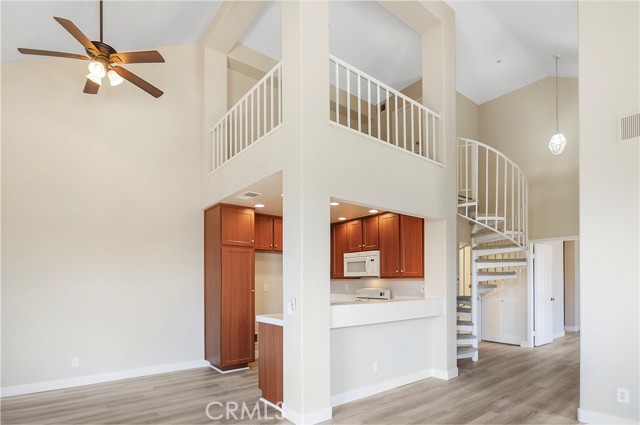 Discover an exceptional floorplan that offers unparalleled flexibility, featuring a spacious loft and two bedrooms! This charming home is designed to impress, with stunning upgrades and an inviting layout. Vaulted ceilings and an abundance of windows fill the space with natural light, complemented by adjustable custom window coverings to create the perfect ambiance. The primary suite boasts an en-suite bath, a mirrored wardrobe with built-ins, and a private patio—your own serene retreat. The versatile floorplan also includes a second bedroom and a generous loft, ideal for a home office, game room, or additional sleeping quarters. Situated in an upstairs location with no neighbors above or below, this home offers privacy and tranquility. It includes a one-car detached garage plus a covered carport space (#211), with additional guest parking available within the community. Enjoy resort-style amenities, including a pool and spa. Nestled in a prime Tustin Ranch location, this home provides quick access to the 5, 261, and 55 freeways, as well as top-rated Tustin schools. You're just moments from premier shopping and dining at The Tustin and Irvine Marketplace, The District, and Costco, with parks, recreational spots, and Tustin Ranch Golf Course all nearby. Don't miss this incredible opportunity!