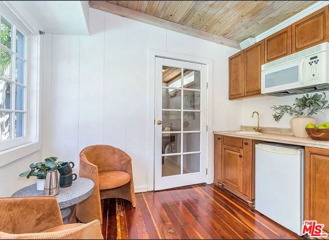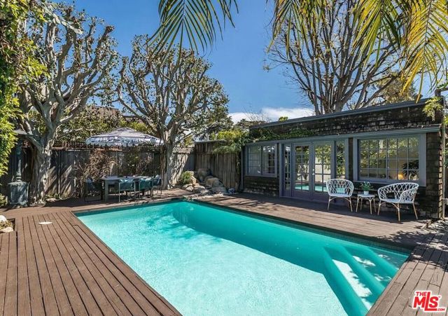 Sunset Square Stunner | West Hollywood Craftsman with Pool & Guest House. Welcome to this charming Craftsman-style retreat in the heart of coveted Sunset Square, where timeless character meets modern California living. Perfectly situated mid-block on a picturesque, tree-lined street, this 2-bedroom, 2-bathroom home with an office offers a seamless blend of comfort, style, and indoor/outdoor living. Step inside to a light-filled living room featuring vaulted ceilings, a cozy fireplace, and an open dining area. The updated kitchen boasts an eat-in breakfast bar ideal for casual mornings or entertaining guests. A versatile front room serves beautifully as an in-home office, studio, or den. The middle bedroom enjoys privacy and easy access to a full bath, while the expansive primary suite at the rear of the home impresses with dramatic vaulted ceilings, a sitting area or workspace, steam shower, dual closets, and French doors that open to your tranquil backyard oasis. Outside, discover a resort-style saltwater pool (recently re plastered) with solar heating, wraparound decking for al fresco dining, a hot tub, and a fully equipped guest house with kitchenette and full bath perfect for visitors or a creative workspace. Nestled on one of West Hollywood's most desirable blocks, this home offers privacy, character, and walkability. Stroll to Runyon Canyon, Laemmle Theatres, Crunch Fitness, and all the world-class dining, shopping, and nightlife that make this neighborhood iconic.
