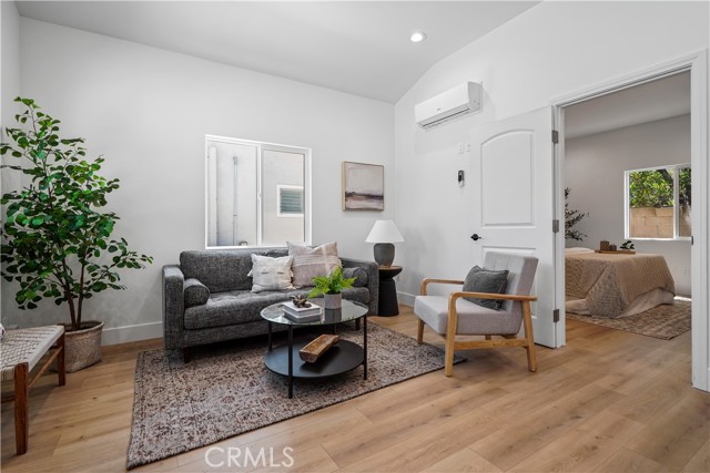 Welcome to this newer, one bedroom ADU! It's located at the end of a quiet cul-de-sac and near lots of shops, golf, and restaurants. As you arrive, you'll be led up the long driveway providing two parking spaces and a large fenced in yard for privacy. Upon entrance of the home, you will be welcomed by beautiful luxury vinyl flooring that flows throughout the whole unit. The kitchen boasts an open concept to the living area with tall ceilings, making the home feel spacious and bright. The kitchen has custom-built white cabinets and newer appliances, including a stackable washer and dryer. Into the bedroom, you will find the gorgeous brand new bathroom with a large shower. The bedroom also has a large walk-in closet. Both the living room and bedroom have their own minisplit AC. The home also has a small yard around the perimeter of the property with a storage shed.