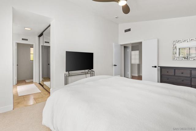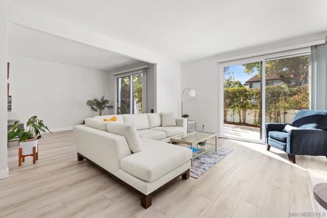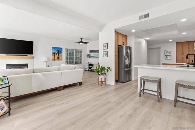 Stunning recent remodel in the coveted East Bluff community of Del Mar Highlands. This 3 bed, 2.5 bath home feels like a single-family residence with wonderful privacy, surrounded by trees, nature, and a charming courtyard on a quiet cul-de-sac. Updated throughout with a remodeled kitchen featuring new shaker cabinets, quartz counters, updated lighting, fresh paint, new fixtures, and floors. Cozy updated gas fireplace for cool nights. Light and bright open floor plan with brand-new dual-pane windows and custom blinds/shades. Enjoy a spacious primary bedroom with vaulted ceilings, walk-in closet, and en-suite bath. Unbeatable location close to One Paseo, Del Mar Beach, Torrey Pines, and award-winning schools. Don’t miss this coastal vibe home!