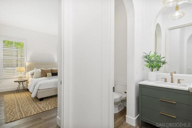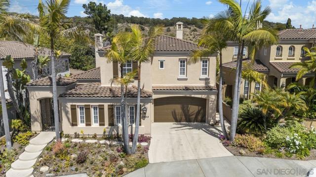 Welcome to 11649 Thistle Hill, nestled in the exclusive gated community of Torrey Woods Estates. This exceptional home offers the unique advantage of choice between two top-rated elementary schools: Ocean Air or Torrey Hills. Gated courtyard entry invites you into a freshly painted home with designer finishes. Grand formal entry with cathedral ceilings open to the elegant formal living and dining rooms with dual-sided fireplace. New luxury vinyl plank flooring, custom lighting, and an abundance of natural light throughout. The chef’s kitchen is a true showstopper, featuring an oversized island with prep sink, pendant lighting, Quartz countertops, a spacious eat-in area, walk-in pantry, built-in desk, premium Viking appliances including a 6-burner cooktop with hood and professional-grade refrigerator—all seamlessly flowing into the family room with fireplace. Private backyard landscaped with gorgeous, mature greenery and low-maintenance turf—perfect for relaxing or entertaining. First floor offers a full en-suite bedroom, custom wine cellar, powder room with new vanity plus a versatile bonus room perfect as an office or playroom. Upstairs, you'll find a massive bonus room with custom French glass doors, offering additional space for a second office, media room, or lounge. Expansive primary suite features a generous sitting area and a spa-inspired bathroom with dual vanities, soaking tub, walk-in shower, bidet toilet, and large walk-in closet. Two additional beds, a full bath, and a spacious laundry room with linen storage complete the second floor. Additional upgrades include EV car charger, smart locks & Nest thermostats, updated kitchen countertops, sinks, and fixtures, new flooring, paint, lighting, turf and professional landscaping. All this in a premier location just minutes from Torrey Pines Beach, One Paseo, shopping, dining, and within the top-rated Del Mar Union and San Dieguito Union High School Districts. Don’t miss the opportunity to call this extraordinary home yours!