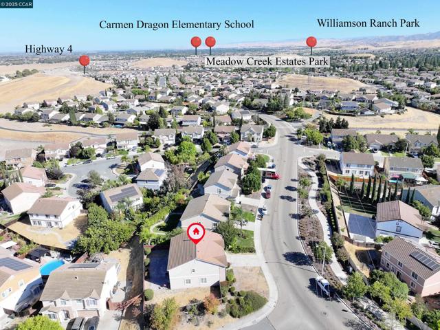 Discover 4599 Ridgeline Dr, a beautifully situated 4-bedroom, 3-bath home on a generous 7,187 sq ft corner lot in a desirable Antioch neighborhood. With 2,698 square feet of living space, this residence offers exceptional curb appeal and a commanding presence. The charming front elevation is framed by mature landscaping and contrasting shutters, leading to a covered front entry. The expansive backyard features a concrete patio—ideal for outdoor dining, entertaining, or future customization. This move-in-ready home is located just minutes from schools, parks, shopping, convenient Highway 4 access and Bart. A rare opportunity to own a spacious, well-positioned home in one of Antioch’s most accessible locations!
