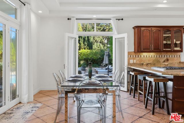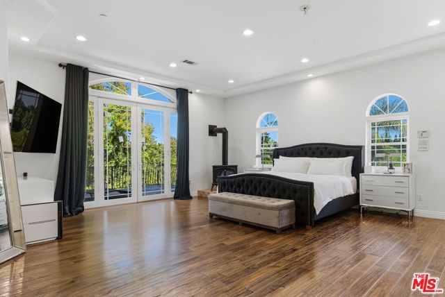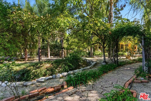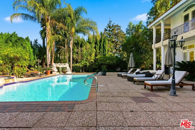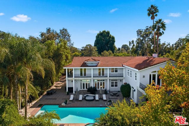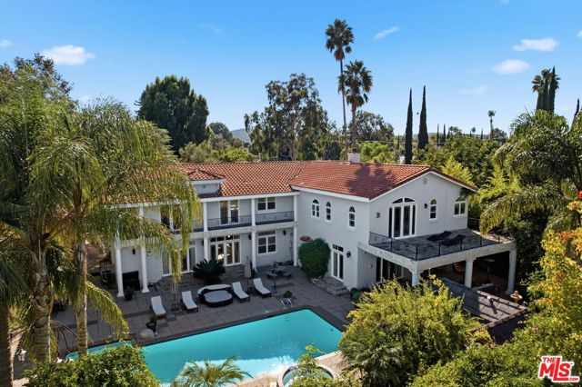 Private Living in the acclaimed Walnut Acres of Woodland Hills! This grand Spanish-inspired colonial estate is a dream home that brings the best of classical, and the sleek elegance of modern living. The residence spans over 6,200 square feet and sits on an approximately 39,800 square foot lot that includes a second parcel of land in the back providing room to build an additional structure in the backyard. Perquisites include a private double-gated entry with security cameras, intercom, indoor/outdoor speaker systems and optical cable. Enter this sophisticated high ceiling residence through a custom double walnut door that leads to a two-story-high entryway and living area graced by a stunning chandelier, hardwood floors, and intricate moldings. The awe-inspiring chef's kitchen is fully equipped and boasts beautiful granite countertops and Italian travertine backsplash. An intricately wrought iron stairway leads to a 360-degree second-story landing and a wraparound balcony where you will find the living quarters truly fit for royalty. The celestial primary suite features two walk-in closets, a custom fireplace and an impeccable ensuite bathroom with a walk-in steam shower and separate jacuzzi. Even more, double patio doors lead to just shy of an acre of resort-style living with a Mediterranean style pool, spa, private built-in BBQ/Bar and a verdant garden with mature foliage, fruit trees, and a long private driveway with two separate gates.