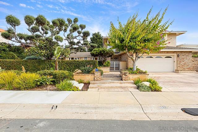 Enjoy the best of North La Jolla living in this spacious 5-bedroom, 4-bath home located near The La Jolla Playhouse, Birch Aquarium, UCSD, medical centers, shopping, and top-rated schools. French doors and large windows fill the home with natural light and create an airy, welcoming ambiance. The kitchen features custom cabinetry, granite countertops, travertine flooring, and stainless steel appliances. The central living area is large enough to accommodate both a living room and dining area, highlighted by a classic brick fireplace that provides a cozy ambience. There are two primary suites—one on each level—along with three additional bedrooms upstairs. The enclosed front yard offers a warm setting for gatherings, while French doors from the kitchen and breakfast area, the living and dining space, and the entry-level primary suite open to the backyard, which includes a covered patio and an outdoor area. This well-situated home offers easy access to freeways, trolley lines, and is just minutes from the coast and all that La Jolla has to offer.