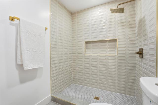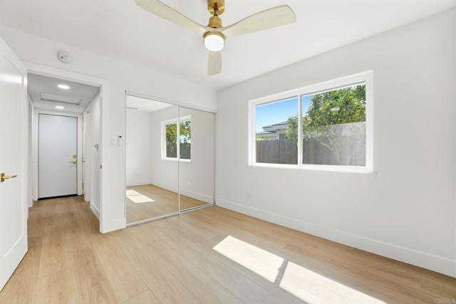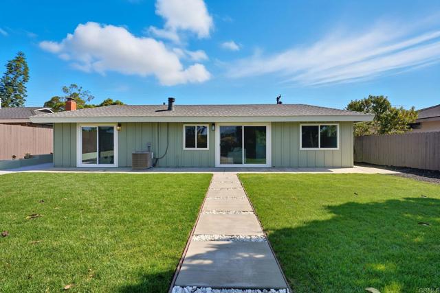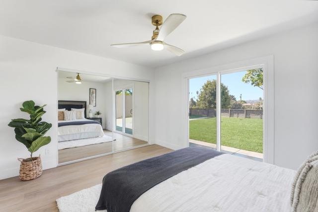 Beautifully remodeled single-level home in highly desirable University City featuring 4 bedrooms and 3 bathrooms, including two ensuite bedrooms. The spacious floor plan offers both a living room and family room, perfect for entertaining or relaxing. The stunning open kitchen boasts quartz countertops, custom cabinetry, and a large island that flows seamlessly into the living spaces. Enjoy a serene canyon setting and views of Mount Soledad from the expansive backyard with mature trees, including avocado and macadamia nut, plus new fencing and lush landscaping. Stylish finishes include luxury vinyl plank flooring, recessed lighting, brushed gold hardware, new roof, updated systems, and central A/C and heat. A rare blend of modern design, comfort, and natural beauty. Walking distance to Spreckels Elementary, and close proximity to shopping, recreation, beaches, highways, and San Diego attractions!