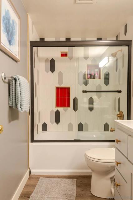 This fully furnished property is available for mid and long-term stays. Rates are subject to change based on seasonality and length of stay. Nestled in the heart of Carmel Valley, this charming ground-floor condo is your gateway to San Diego’s coastal beauty and vibrant lifestyle. With two bedrooms, two bathrooms, resort-like amenities, and a pet-friendly policy, it’s the perfect spot for families, friends, or professionals seeking a peaceful yet convenient retreat. Just a short drive to Torrey Pines State Beach as well as multiple shopping centers, you'll find stunning hiking trails, water activities and a fantastic selection of dining and shopping options nearby. Inside, the living room invites relaxation with a comfy couch, a flat-screen TV, and sliding doors that lead to a quaint front patio with seating for two. The adjacent dining area features a table for four, perfect for shared meals or game nights. A light-filled, modern kitchen boasts stainless steel appliances and is fully equipped to meet all your culinary needs. Bedroom 1 offers a king bed, dedicated workspace and a flat-screen TV, while bedroom 2 includes a queen bed, desk, and chair, ensuring comfort and productivity for all guests. A bonus queen pull-out couch in the living room accommodates two additional sleepers. One bathroom features a convenient combo shower/tub and the other has a sleek shower. Additional perks include mini split systems for heat, A/C, and dehumidifier in the living room and all bedrooms, quiet high-speed internet, in-unit laundry, and a designated carport parking spot. Surrounded by serene greenery, koi ponds, and sparkling lakes, the community offers an array of amenities, including a tennis court, pool, spa, BBQ area, and clubhouse. Whether you're here to unwind, explore, or work remotely, this condo is the perfect home base for your San Diego adventure. This fully furnished property is available for short-, mid-, and long-term rentals. Rates are subject to change based on seasonality and length of stay. Contact listing agent for specific rates tailored to your preferred stay length and timing.