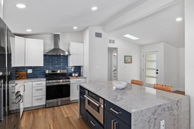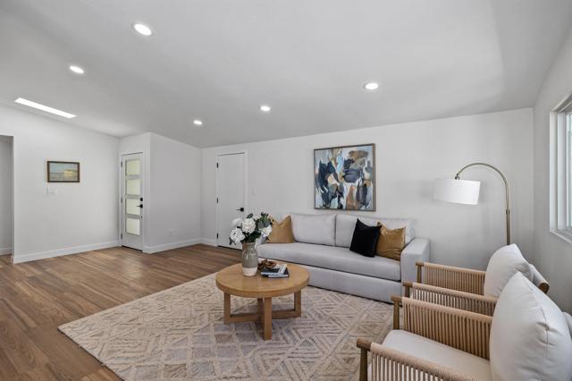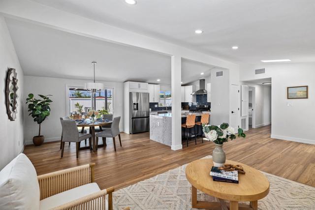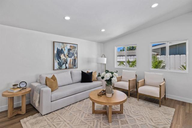 Welcome to 5284 Winthrop Street, a fully-upgraded 3-bedroom, 2-bath home offering 1,200 sq. ft. of modern living in one of Clairemont’s most desirable neighborhoods. Step inside to find a bright, open layout featuring all-new LVP flooring, recessed lighting, skylight, and fresh interior and exterior paint. The brand-new kitchen features sleek cabinetry, Caesarstone counters with waterfall end kitchen island, stainless steel appliances, and stylish finishes. Ceiling fans installed in all three bedrooms. Both bathrooms have been completely remodeled, and a new high-efficiency, whole-home HVAC system ensures year-round comfort. Second fridge, washer/dryer, laundry basin, and storage racks are located in the garage. Outside, enjoy a xeriscaped front yard, and landscaped backyard with spacious two-level Timbertech deck, lighted pergola with adjustable shade, fully fenced, newly sodded and irrigated, with solar landscape lighting and plenty of room for entertaining or relaxing in your private outdoor space. Perfectly situated in a quiet, sought-after pocket of North Clairemont, with MacDowell Neighborhood Park at the end of the block, and just minutes from shopping, dining, freeways, and all that San Diego has to offer.