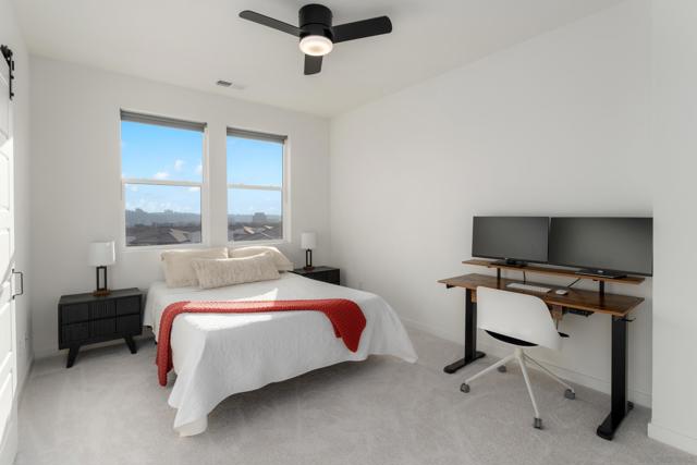 Sunset west-facing views! 2022 build. Very rare to have views at this price point — truly the best deal in Civita! Welcome to 3045 Marquee Way, located in the highly desirable Marquee at Civita community in the heart of Mission Valley. This modern 2022-built home features one bedroom plus a spacious loft and showcases premium upgradesthroughout, including enhanced flooring, designer lighting, sleek countertops, high-end appliances, a large closet, and generous storage space. Enjoy the convenience of an oversized one-car garage and the exceptional lifestyle that Civita is known for. Residents have exclusive access to resort-style amenities such as a state-of-the-art recreation center, two sparkling pools, a two-story fitness center, scenic walking and hiking trails, and a beautifully designed 16-acre park. Nearby parks, shopping, dining, and additional trails make this location as practical as it is desirable. Don’t miss this rare opportunity to own a view home at an unbeatable value in Civita!