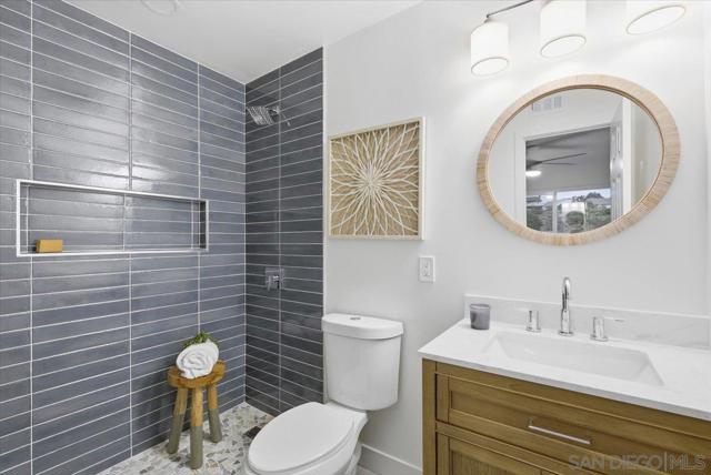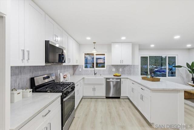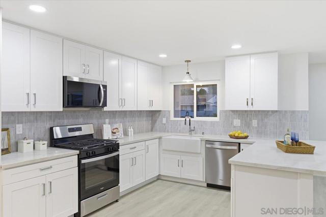 Beautifully remodeled 4 bed, 2 bath home with stunning Coronado Bridge, downtown city-light, and peek-a-boo water views. This upgraded property features new plumbing, new central HVAC, and double-paned energy-efficient windows. The formal living room opens to the breakfast area and modern kitchen, which offers shaker cabinets, quartz countertops, a chic tile backsplash, stainless-steel appliances, and a large breakfast-bar peninsula. The expansive family room with wood-beamed vaulted ceilings flows to a nicely sized backyard with a covered patio overlooking the views. The spacious primary suite includes its own views and a spa-inspired bathroom with an oversized walk-in shower. Additional highlights include a two-car garage and an oversized driveway ideal for multiple vehicles or potential RV/boat parking. Convenient location with easy access to shopping, dining, and major freeways.