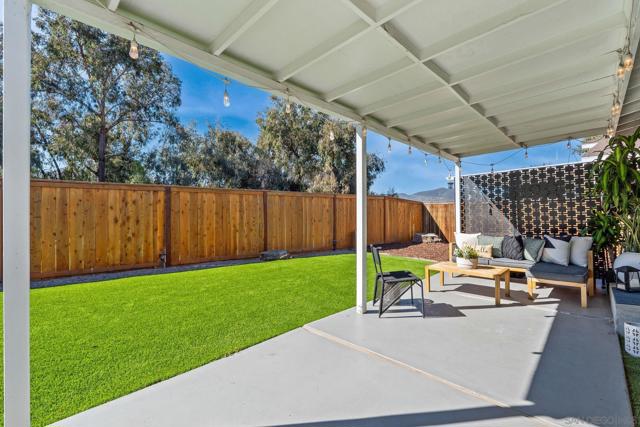 Well maintained 3Bed/2Bath, large kitchen to family room with built-ins and stainless steel appliances, oversized sink, pendant lighting over Island, canned lighting throughout the home, open floor plan with finished backyard, 2 car garage with sealed garage flooring in sought after Carlton Oaks neighborhood. Two full sized bathrooms with art decor tile, 1 with full size tub and 2nd with low threshold walk-in shower. This home was remodeled in 2019 and sellers have maintained its beauty along with finishing the backyard, adding turf and landscaping, retractable screen doors to accommodate French doors, renovated garage roof to slanted roof water roll off with double layering, glass storm door entrance and a new water heater. Agent related to Seller. Wild Life may or may not be seen from golf course. Golf balls may or may not be seen. Beautifully maintained interiors with LVP, Island with Woodblock top (never been used without a cover), large bay windows, 2 french door sets with one in the primary bedroom and one just off the kitchen/family room combo bringing the outside in with ease. Newer vinyl windows & large bay windows in family room along with the openness offer tons of natural light throughout the home. The 9,172 SF oversized lot has a Turf backyard, partially covered patio and mulch side yard, easy entry and storage side yard on opposite side of the home and plants on drip system for both front and back yards for easy maintenance. Backyard abuts Carlton Oaks Golf Course. Golf Course may or may not be upgraded with Hotel, Spa, new course and residential units. West Hills High School and Carlton Oaks school are nearby. Easy freeway access to both HWY 52 and HWY 125. Santee is a city with parks, recreation centers & sport facilities, its own Costco/Gas, Lowes, Kohls, Target, Home Depot, and multiple large shopping centers and strips for restaurants, groceries, yoga and more! See breakdown in docs of $162.40 for special assessments water, mosquito, fire, vector and other. Tax records show 4 Bed, but is a 3 bedroom. See prop info in docs.