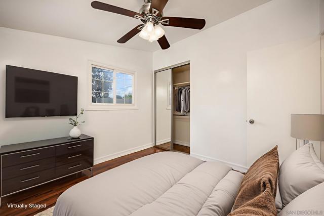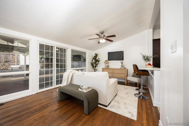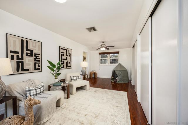 Welcome home to this beautifully refreshed 4-bedroom, 2-bath single-story charmer in the highly desired Allied Gardens/Del Cerro community! Recently freshly painted, this home feels bright, inviting, and truly move-in ready. Step inside to discover a cozy family room with expansive windows and a dining room filled with natural light. Warm hardwood floors flow throughout, creating a clean and cohesive feel. The kitchen features rich wood cabinetry, quartz countertops, stainless steel appliances, and a functional breakfast bar ideal for everyday living or entertaining. Enjoy a beautifully flexible four-bedroom layout, with one light-filled bedroom currently shown as a home office—an excellent option for use as a true bedroom, guest space, or hobby room. All bedrooms feel bright and welcoming, and both bathrooms have been tastefully updated with classic tile and contemporary fixtures. Sliding doors lead to the backyard, where you’ll enjoy a covered patio and your own tangerine, orange, and lemon trees—a sunny outdoor space perfect for relaxing, gardening, or hosting gatherings. Located minutes from neighborhood parks, top-rated schools, Mission Trails, shopping, and convenient freeway access, this home offers the perfect blend of comfort, functionality, and location. A must-see opportunity in one of San Diego’s most sought-after pockets!