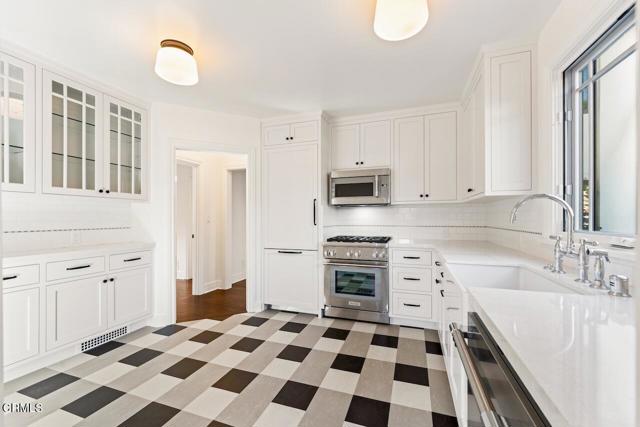 This beautifully remodeled vintage two-bedroom, two-bathroom apartment is ideally located near Garfield Park, the weekly Farmer's Market, local grocery stores, popular restaurants, and charming boutiques. The entire interior has been thoughtfully updated, featuring beautifully refinished original hardwood floors, Thermador kitchen appliances, and a brand-new LG washer and dryer. Enjoy the comfort of new double-pane windows that fill the space with natural light while maintaining a peaceful atmosphere. The spacious living area retains its original character, highlighted by a stunning original Batchelder fireplace. Additional features include two tandem garage parking spaces and access to the highly-rated South Pasadena School District.