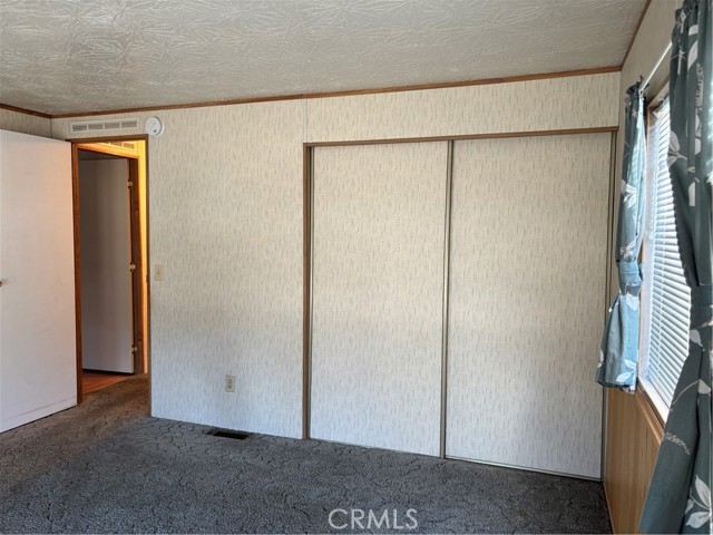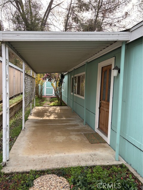 Spacious home in senior community with 3 bedrooms and 2 baths. The primary suite is situated at one end of the home, and the other 2 guest bedrooms and one bath are at the opposite end of the home. The middle part of the home consists of a very large living room, the kitchen, and the dining area. The kitchen has lots of cabinets for handy storage, and ample counter space. There is a skylight in the kitchen, giving it bright, natural light. The dining area is spacious with room for a large dining set, and other dining furniture. Both guest bedrooms are generously sized and have large windows. The guest bathroom has a shower over the tub. The primary suite is huge. Even with a king bed, there is room for lots of furniture, even a sitting area. Off the primary bedroom is the primary bath. It has a large step-in shower, with grab bar for safety. The toilet is in a privacy nook, and also has a grab bar. There is a small closet in the primary bathroom. This bathroom is adjacent to the laundry area and back door. This very spacious home has a private backyard with a deck. The lot is small, so will not require much maintenance. The carport provides 2 covered parking spaces at the back entrance to the home. There are two storage sheds. This senior community is for folks 55 years and older. Pets are allowed, but must be approved by management. When you purchase in this senior community, you must purchase stock in the corporation, which is $28,000. After the first of the year, the stock price will be $30,000. Those funds are used for ongoing maintenance of the community. If you move out of the community, the stock is fully refunded. There is no monthly space rent, but you will be billed monthly for water, sewer, electricity, and propane. There is no charge for trash collection. This senior community is very close to town for shopping convenience. Mariposa has a senior bus service that will pick you up at your home and take you to appointments and shopping, for a small fee. The park is a great place to walk for exercise, and to meet your neighbors.