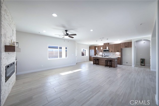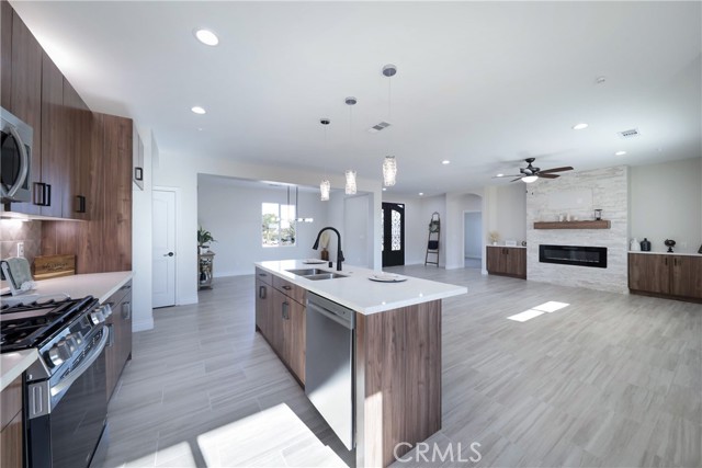 Semi Custom Home!!! This 1,908 sq ft home features 3 bedrooms, 1.75 bath, open kitchen to the family and dinning room, tile throughout all common areas, ceiling fans in all bedrooms and living room including an electrical fireplace for those cozy winter nights. The master suite includes an en-suite bathroom with a large enclosed shower and walk in closet. All upgrades come included in this home such as quartz countertops, energy efficient stainless steel appliances and did I mention PAID SOLAR!!! Located in a corner lot which includes RV parking. This house has pristine landscaping and great curve appeal.