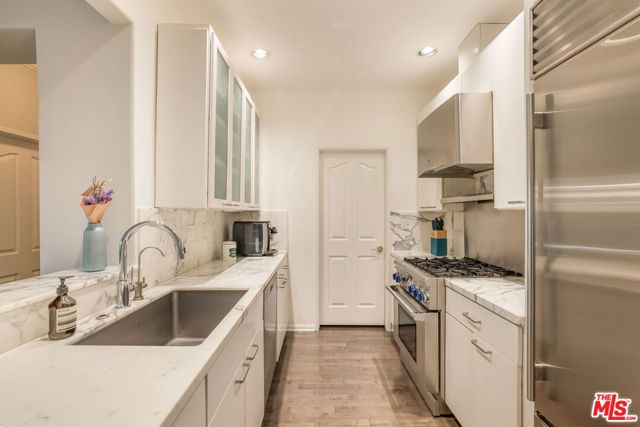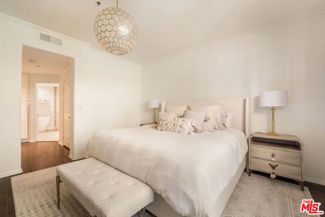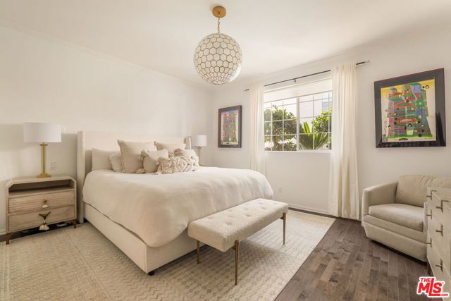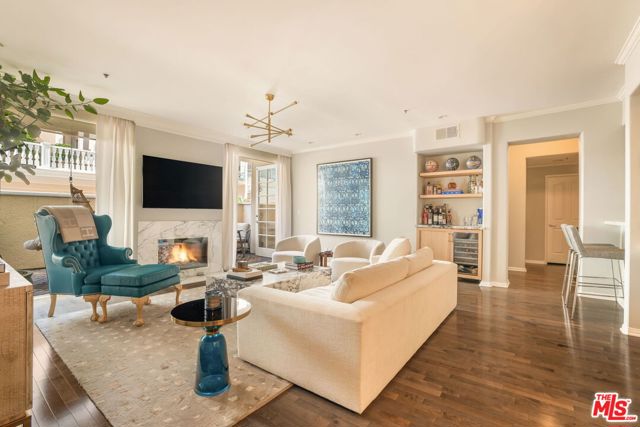 Experience refined living in this elegantly furnished 2-bedroom, 3-bath residence offering 1,464 square feet of meticulously designed space. The open-concept floor plan is graced with high ceilings and elegant hardwood floors that flow seamlessly throughout, creating an atmosphere of timeless sophistication. The custom chef's kitchen features Carrera marble countertops, a breakfast bar, and premium Thermador appliances that flows into the open dining room. The inviting living area centers around a stunning marble fireplace, while twin French doors open to two private terraces, ideal for morning coffee or evening relaxation. The primary suite is a serene retreat with a spa-like bathroom, complete with a built-in vanity, soaking tub, and a spacious walk-in closet. A full in-unit laundry room and generous storage provide added convenience. This full-service luxury building offers a wealth of amenities, including a 24-hour concierge and security, heated pool, fitness center, sauna, meeting room, guest parking, EV charging station and a tranquil courtyard for residents to unwind. Two side-by-side parking spaces in the gated subterranean garage complete this remarkable offering.Perfectly combining elegance, comfort, and modern convenience, this home redefines luxury condo living with walkability to the best restaurants and private clubs West Hollywood and Beverly Hills has to offer. Available beginning of January 2026.
