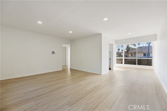 This stylish Long Beach condo offers a private courtyard entry and a bright, welcoming interior. A large wall of glass picture windows fills the living room with natural light, complemented by flush-mount lighting and light-colored luxury plank flooring throughout. An additional panel of windows in the dining area provides views of the neighborhood’s palm trees, while a kitchen serving window makes entertaining easy. The remodeled kitchen features crisp white cabinetry, sleek black and stainless steel appliances, a stainless steel double sink with a high-arc faucet, and quartz counters. The spacious primary suite offers two full-length mirrored wardrobe closets and direct access to its beautifully updated ensuite bathroom with glass-door walk-in shower and tastefully tiled surround, new fixtures, and quartz-topped vanity. A secondary bedroom also includes mirrored wardrobe doors, providing abundant storage. The remodeled hall bathroom includes a new tub/shower enclosure with glass shower doors, quartz counters, new floors, and modern fixtures. Raised panel doors and thoughtful finishes enhance the home’s fresh appeal. With its stylish updates, natural light, and functional design, this condo combines comfort with a desirable location. With a remarkable walkability score of 94 you are sure to enjoy the local shops, boutiques, and restaurants, and it's very bikeable too with a score of 86. Enjoy nearby attractions like the waterfront and the brand-new Modern Civic Center. With endless activities and strong rental potential. Commuter-friendly with the convenient Metro Blue Line and easy freeway access. All this for an affordable price. See it today!