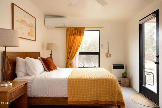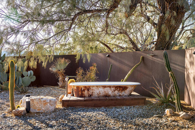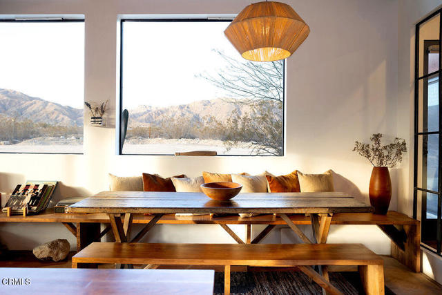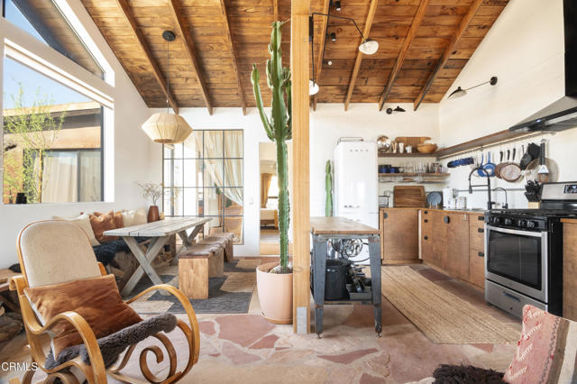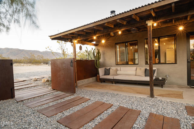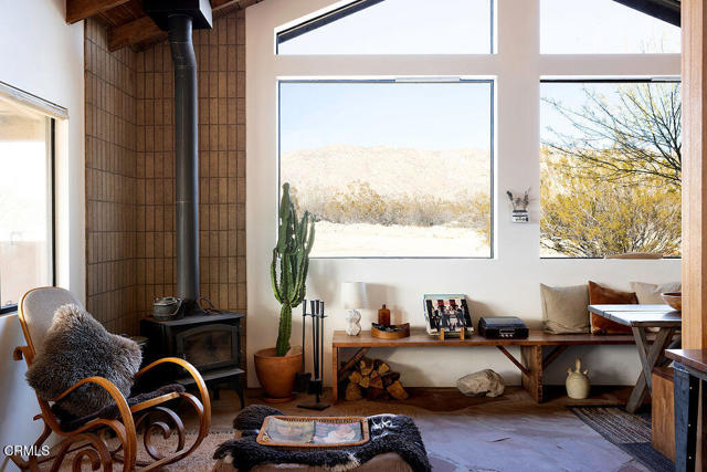 Welcome to Rancho Morongo, a rustic-modern homestead situated on 2.5 pristine acres in Morongo Valley--just 20 minutes from Joshua Tree or Palm Springs, and under two hours from Los Angeles. This beautifully restored 1954 ranch-style home was thoughtfully renovated in 2019 and now operates as a successful 5-star vacation rental. The property features 3 bedrooms, 2 bathrooms, and an airy open-concept great room, which boasts a chef's kitchen, custom cabinetry, dining banquette, and a cozy living area with a wood-burning fireplace. A second expansive family room offers a wet bar, library nook, and another wood burning stove, perfect for game nights and entertaining. The massive primary bedroom has direct access to a fully fenced side yard, and the large hall bathroom contains a walk-in shower, as well as a soaking tub with mountain views. A beautiful bunk room, additional guest room and 3/4 bath round out the interior. Outdoors, enjoy total privacy with 360 views, a cowboy plunge-pool, an above-ground hot tub, multiple lounge areas, a vintage trailer, and flourishing desert gardens with agave, prickly pear, palo verde, yucca, ocotillo, and Joshua trees. The home is newly connected to the grid, although mostly powered by owned solar panels, and will be sold fully furnished and stocked--every piece carefully curated to match the serene desert aesthetic.