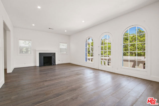 Built in 1925 and beautifully remodeled, this rare upper-level residence offers 2 bedrooms and 2.5 baths in an exclusive two-unit duplex, giving you unmatched privacy in one of LA's most coveted neighborhoods. Just steps from Melrose Place's boutiques, cafs, and iconic Sunday farmers market, yet tucked away on a quiet tree-lined street, it's the perfect balance of excitement and retreat. Sunlight pours through arched windows onto wide-plank hardwood floors, highlighting the spacious living room with a stone fireplace and French doors that open to a large treetop balcony, creating a serene, treehouse-like escape. The updated chef's kitchen features sleek white cabinetry, high-end stainless steel appliances, and flows seamlessly to a formal dining room for effortless entertaining. Both bedrooms are generously sized, with the primary suite offering a spa-like bath. Enjoy in-unit laundry, central HVAC, and a covered garage space with storage plus an additional uncovered spot. A rare opportunity to live in a piece of LA history, reimagined for today's lifestyle.