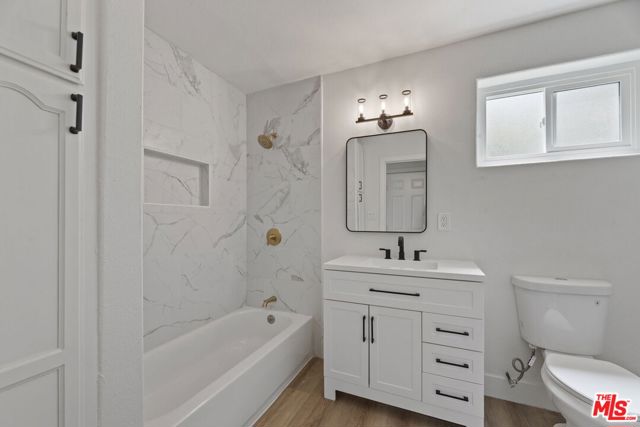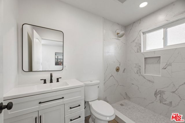 Introducing a freshly renovated gem that blends modern luxury with high end finishes. Set in a prime location, this home delivers the ideal mix of style, comfort, and calm. Inside, you will find a beautifully reimagined interior with high-end finishes, an open and airy layout, and plenty of natural light throughout. The sleek contemporary kitchen is a standout, featuring top-tier appliances, beautiful countertops, and generous storage. Whether you are hosting friends or enjoying a quiet night in, the seamless connection between the living and dining areas creates an inviting setting for any moment .Both bedrooms offer impressive space and large windows that let you wake up to something truly special. The bathrooms have been thoughtfully designed with modern fixtures and finishes to elevate your daily routine. Located in one of LA's fastest growing neighborhoods, you will be close to local dining, shopping, and entertainment, while still enjoying the sense of tranquility and privacy that make this property so exceptional.