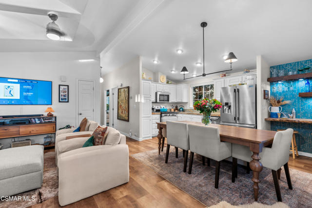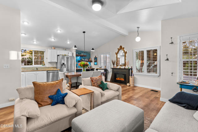 This beautifully remodeled two-bedroom two-bathroom home combines modern comfort with serene mountain living. Set within a gated community on owned land, the property welcomes you with a freshly painted exterior, expansive front yard with grass and plantings, and a spacious backyard transformed with decomposed granite, hedges, lush landscaping, and a spa complete with a custom deck and pergola, perfect for tranquil outdoor relaxation.Inside, soaring high ceilings create an open, airy feel. The home has been fully updated with flooring, fresh paint, completely renovated bathrooms, a stylish added bar, designated laundry room, and a cozy fireplace. The kitchen features updated appliances, blending functionality with modern design.There is 3-car parking in the carport, plus the side of the driveway has been redone with attractive hedges and durable vinyl fencing, further boosting curb appeal and privacy.Located in a peaceful, upkept community known for its welcoming, family-friendly and dog-friendly atmosphere, residents enjoy fantastic amenities including a gym, pool and spa, newly repaved streets, an updated dog park, and kids' park.Here, you truly get the best of both worlds! The tranquility of the mountains combined with easy access to city conveniences when you need them.Move-in ready, stylishly updated, and offering exceptional indoor-outdoor living, this home is a rare find!