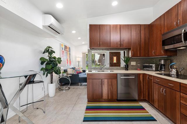 This beautifully maintained 1-bedroom, 1-bath condo sits in the heart of the coveted Historic Tennis Club neighborhood--one of Palm Springs' most iconic and walkable enclaves. Vaulted ceilings flood the open living space with natural light, while the spacious private patio creates an easy indoor-outdoor flow perfect for morning coffee, al fresco dinners, or soaking in the desert air.The community offers gated access, assigned parking, on-site laundry, and a sparkling pool and spa--ideal for effortless lock-and-leave living. Just minutes from downtown, you're close to premier restaurants, galleries, boutiques, and scenic hiking trails, with Spencer's Restaurant practically in your backyard.Residents also have the option to join the Tennis Club for access to tennis courts, pickleball, an additional pool and spa, and a modest fitness area. Please note: per HOA rules, short-term and long-term rentals are not permitted, preserving the peaceful, residential feel of this sought-after neighborhood. A perfect fit for those looking for a serene primary home or a relaxing seasonal escape in one of Palm Springs' most desirable locales.