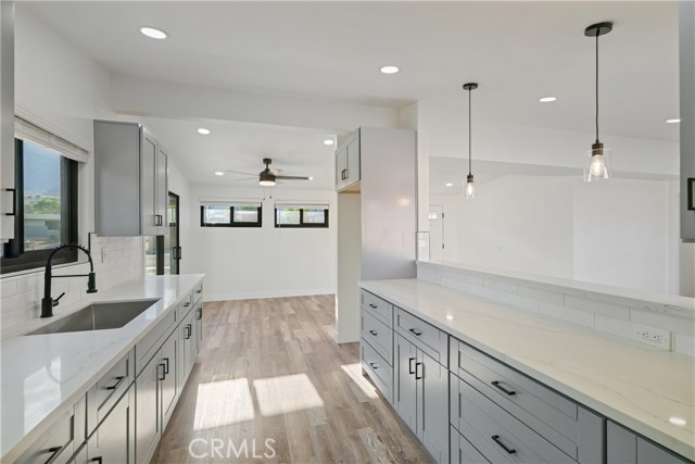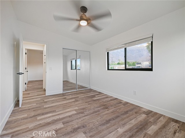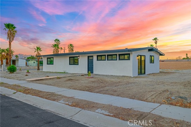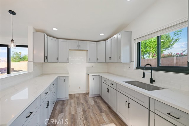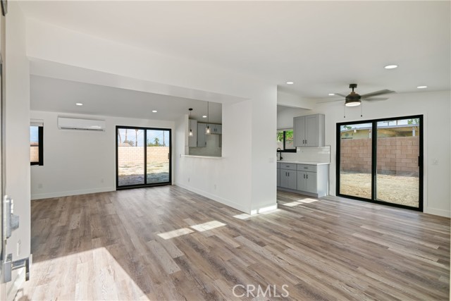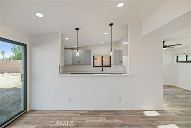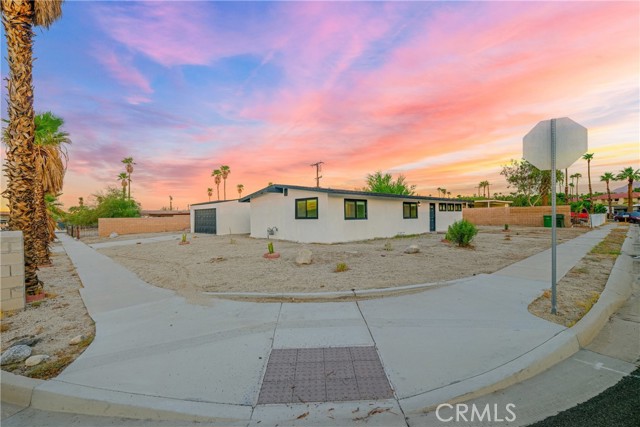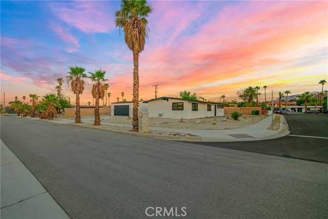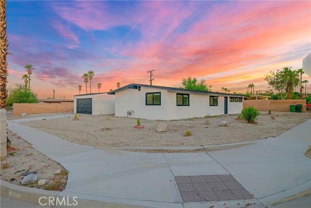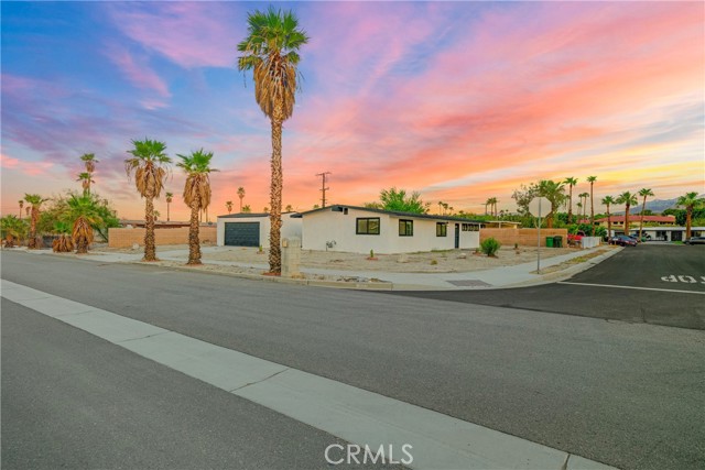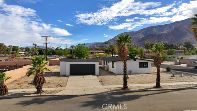 Welcome to Gateway Estates—NO HOA, a rarity in nearby communities—where this corner-lot renovation takes in the San Jacinto backdrop and leans into easy desert living. Inside, black-frame dual-pane vinyl windows and recessed LED lighting keep the spaces bright and calm. The kitchen layers shaker cabinetry, quartz slab counters, and subway tile, with a long serving bar that opens to the living area for effortless gatherings. Two refreshed baths showcase large-format tile and clean, modern fixtures; durable LVP ties the rooms together with a cohesive look. Comfort is handled by a whisper-quiet ductless mini-split that heats and cools efficiently, and an upgraded electrical panel adds everyday confidence. Outside, the oversized, mostly walled yard is ready for your vision—pool, spa, fire pit, or water-wise landscape (buyer to verify). The detached garage includes washer/dryer hookups; it is a garage (not an ADU), though ADU potential may be explored with the City. North-end location close to Uptown/Downtown Palm Springs, the Aerial Tramway, dining, and shops. The City regulates short-term rentals by neighborhood; buyers should confirm current eligibility and requirements for this address. Buyer to verify all permits, square footage, lot size, and ADU feasibility.