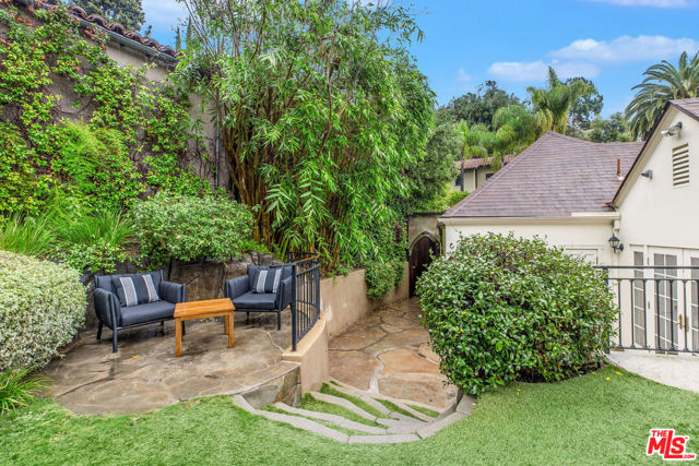 Nestled in the Hollywood Hills, this elegantly updated, fully gated compound with a pool awaits. This 3-bedroom, 2-bathroom home features a gourmet kitchen with a 10-foot island, custom cabinets, Caesar stone countertops, and Viking appliances, including a refrigerator, range, microwave, and Bosch dishwasher, as well as a Miele washer and dryer. Attention to detail is evident throughout this home. Gorgeous, newly finished hardwood floors, built-in closets, Walker Zanger tile, built-in speaker/audio system, high end security system with sixteen cameras, recessed lighting controlled by a Lutron lighting system, crown moulding, wainscoting in the dining room, central air and heat, and hand-selected light fixtures enhance the space. The serene backyard is easily accessible throughout the home and is a perfect place to relax and enjoy the outdoors with a heated pool and spa, not to mention the soothing water fountain. Ideally located, the home is close to all the best restaurants and shops the city has to offer and is just minutes away from the world-famous Runyon Canyon. This won't last long.