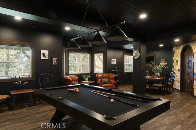 Surrounded by vibrant fall foliage in Lake Arrowhead’s private Oakridge Estates, this spacious mountain retreat blends warmth, comfort, and effortless year round living. Highlights include level entry, a four car garage, and incredible privacy on a half acre corner lot. Inside, thoughtful design and classic details create a welcoming feeling from the moment you step in. Large windows frame the trees and distant ridgelines, rich wood floors add warmth and the main living room centers around a timeless fireplace. The kitchen, dining, and family rooms flow together seamlessly, making everyday living feel easy and connected. A dedicated home office on the main level is ideal for remote work or quiet focus. Upstairs, four generous bedrooms offer plenty of space to unwind, while the lower level is designed for entertaining, complete with a billiards, brew, and wine lounge perfect for hosting friends and family. Outside, the deck sits above the treetops with filtered mountain views and a remote controlled pergola that makes it comfortable in every season. Oakridge Estates is a peaceful community with no short term rentals, plowed and maintained roads, and private lake rights. Just minutes to the country club, the lake, and some of the best hiking trails in Lake Arrowhead. A warm, welcoming retreat for all seasons and especially magical in the fall.